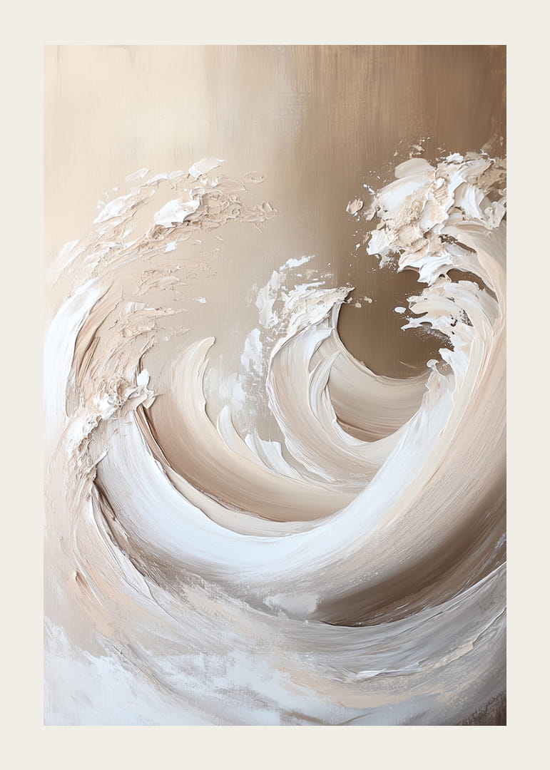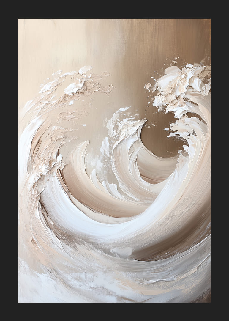 Välittömästi kutsuvan tunnelman luova juliste vangitsee eteerisiä aaltoja pehmeissä maanläheisissä sävyissä. Ne pyyhkäisevät kuin harmoninen veden ja hiekan virtaus, ja jokainen siveltimenvedto hengittää eloa ja liikettä. Tämä juliste muuttaa minkä tahansa huoneen rauhalliseksi keitaaksi, joka on täynnä eleganssia ja tyyneyttä, luoden tunnelman, joka edistää rauhallisuutta ja meditaatiota arjessa.