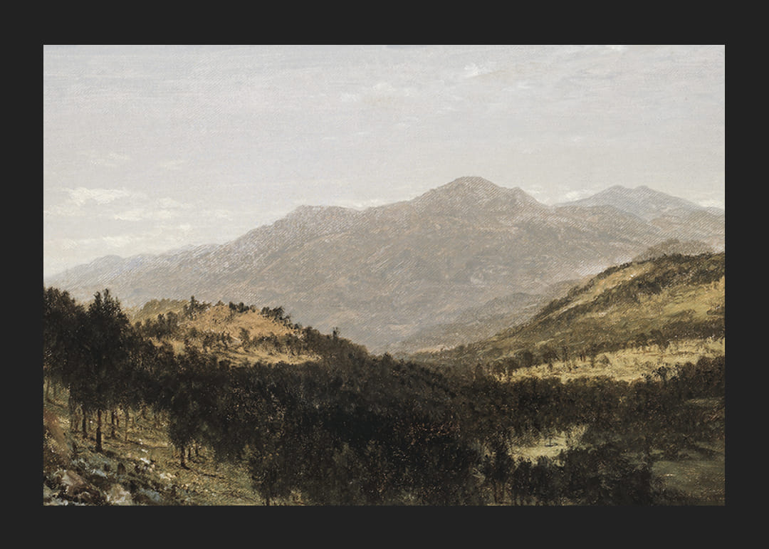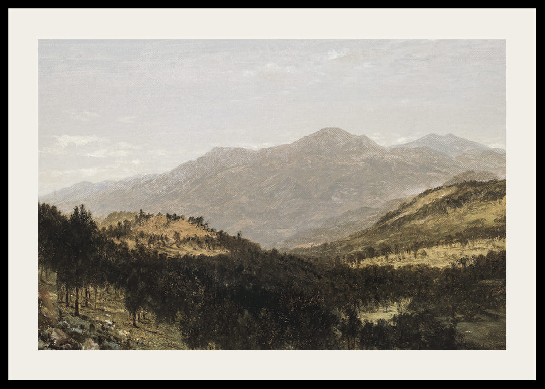 Juliste, jossa on amerikkalaisen taiteilijan John Frederick Kensettin maalaus "Bergen Park" vuodelta 1870.