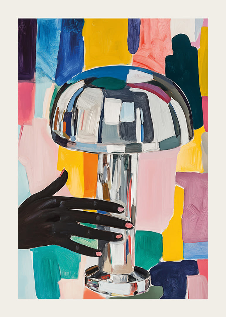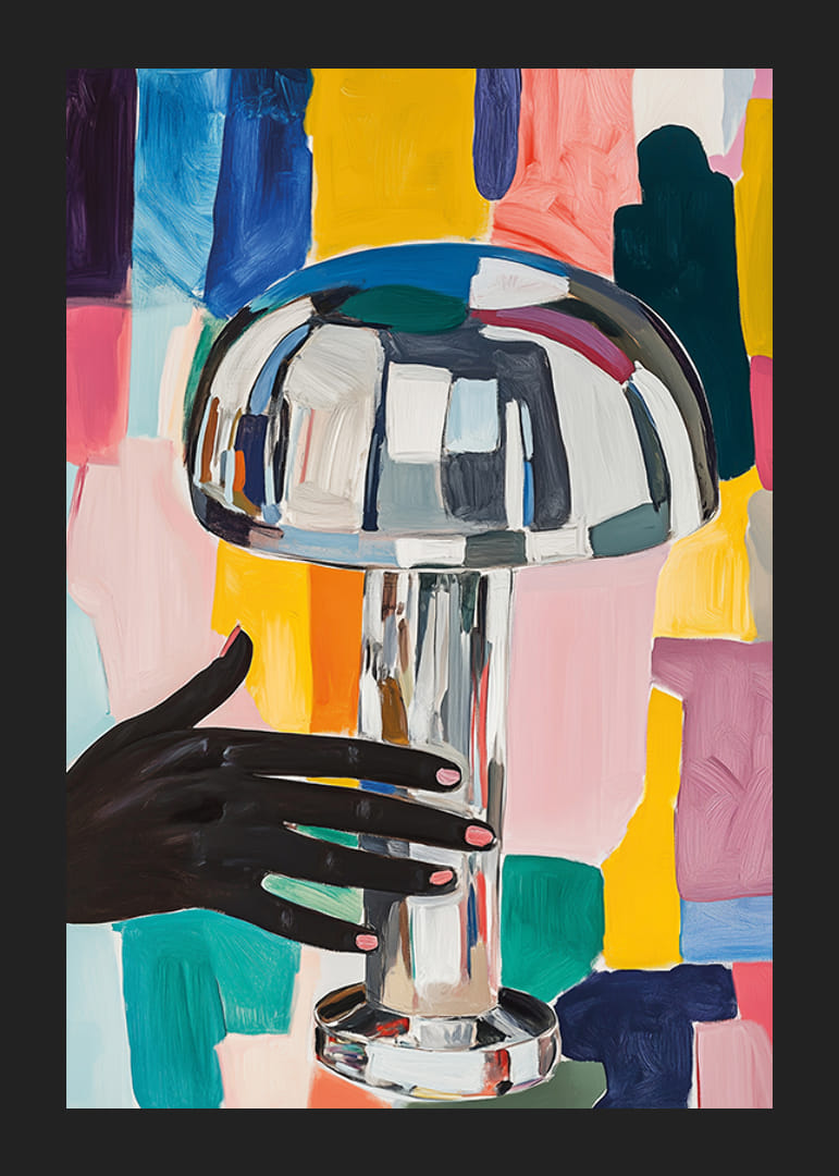 Täytä kotisi elävällä energialla tällä ainutlaatuisella julisteella. Tunteva kokemus, jossa hienostunut käsi syleilee kiiltävää lamppua voimakkaiden värien taustalla. Dynaamiset siveltimen vedot luovat eloisan koostumuksen, joka vangitsee sekä silmän että mielikuvituksen.