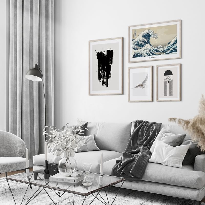 Hanki inspiraatiota olohuoneiden tauluseinistämme. Lajittele seinän värin tai julistemäärän mukaan ja osta koko tauluseinä tai valitse tietyt julisteet ja kehykset, joista pidät eniten.