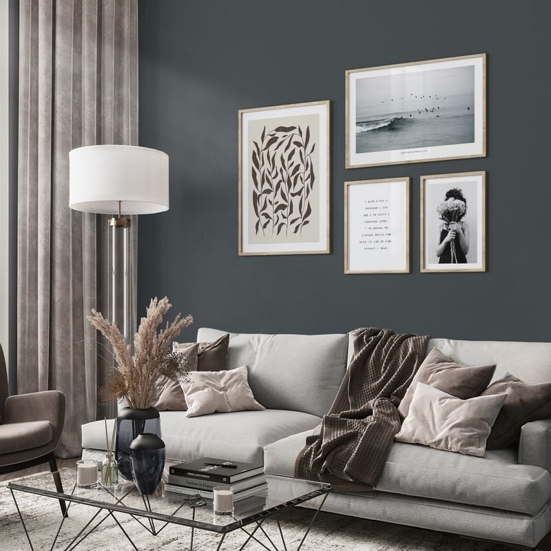 Hanki inspiraatiota olohuoneiden tauluseinistämme. Lajittele seinän värin tai julistemäärän mukaan ja osta koko tauluseinä tai valitse tietyt julisteet ja kehykset, joista pidät eniten.